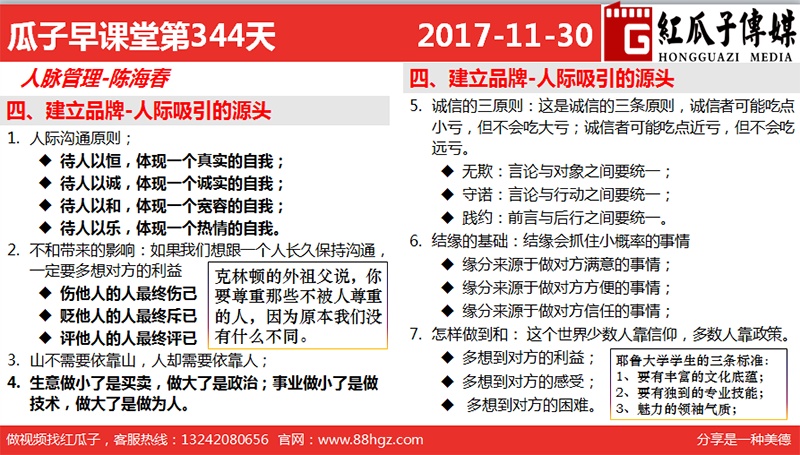5、誠信的三原則:這是誠信的三條原則,誠信者可能吃點小虧,但不會吃大虧;誠信者可能吃點近虧,但不會吃遠虧。
