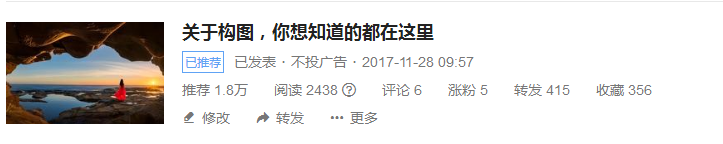 思維的轉變,讓我有了很好的應對方式,從之前的手足無措到現在的慢條斯理,雖談不上經驗豐富,但我也掌握了一些運營頭條的技巧,實際一點的說,頭條的數據也不是那么的難看了。