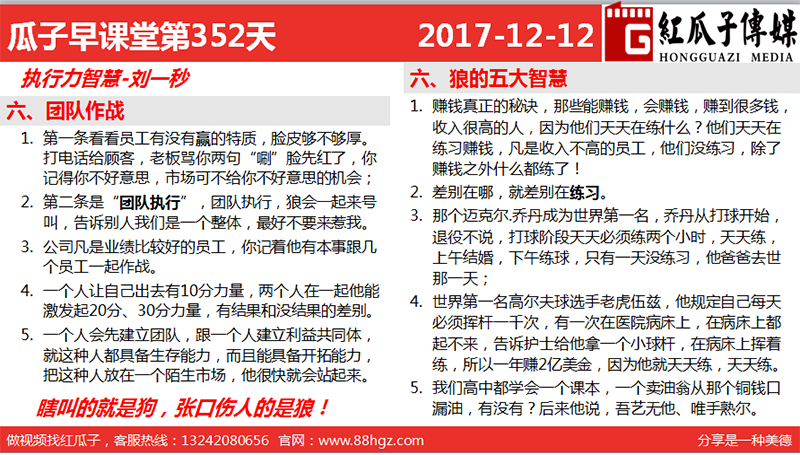 2、第二條是“團隊執(zhí)行”,團隊執(zhí)行,狼會一起來號叫,告訴別人我們一個整體,最好不要來惹我;