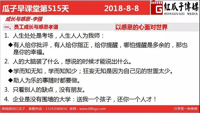 紅瓜子傳媒首頁>相關資訊>最新動態>瓜瓜早課堂第515期-員工成長與感恩孝道