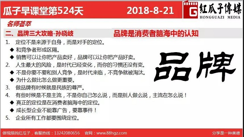 紅瓜子傳媒首頁>相關資訊>最新動態>瓜瓜早課堂第524期-品牌三大攻略