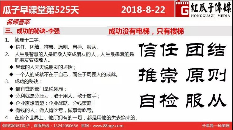 紅瓜子傳媒首頁>相關資訊>最新動態>瓜瓜早課堂第525期-成功的秘訣