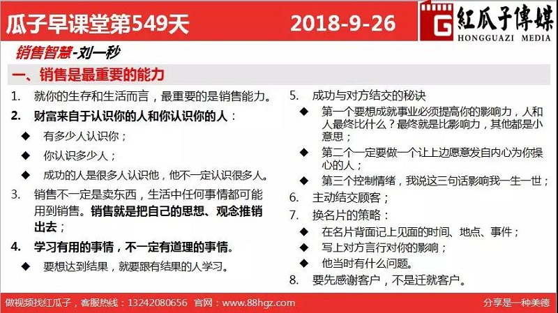 紅瓜子傳媒首頁>相關資訊>最新動態>瓜瓜早課堂第548期-銷售是最重要的能力