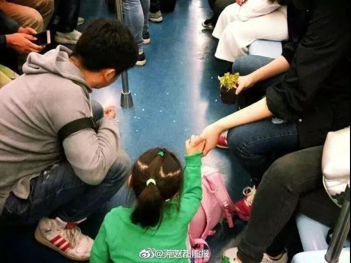 直到地鐵到站前,這位媽媽一直保持著這個(gè)動(dòng)作。
