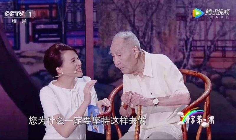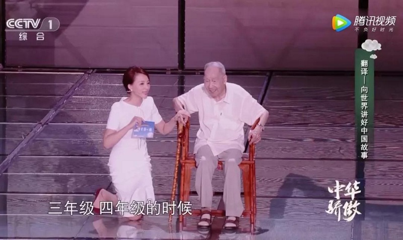 在一檔綜藝節(jié)目中,董卿為了照顧輪椅上96歲高齡的嘉賓,許淵沖老先生,她很自然的選擇了跪地采訪。