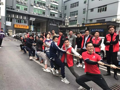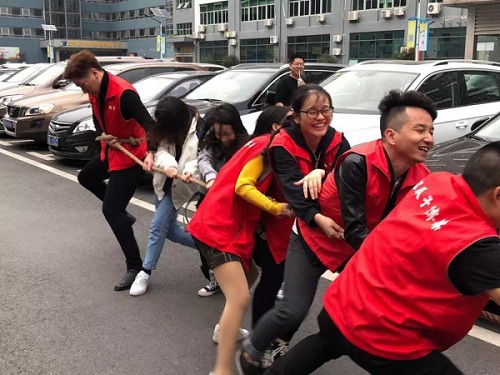 當比賽的哨聲一響起,全體參賽人員使出全身的力量投入到拔河比賽中,現場的吶喊聲、加油聲此起彼伏。