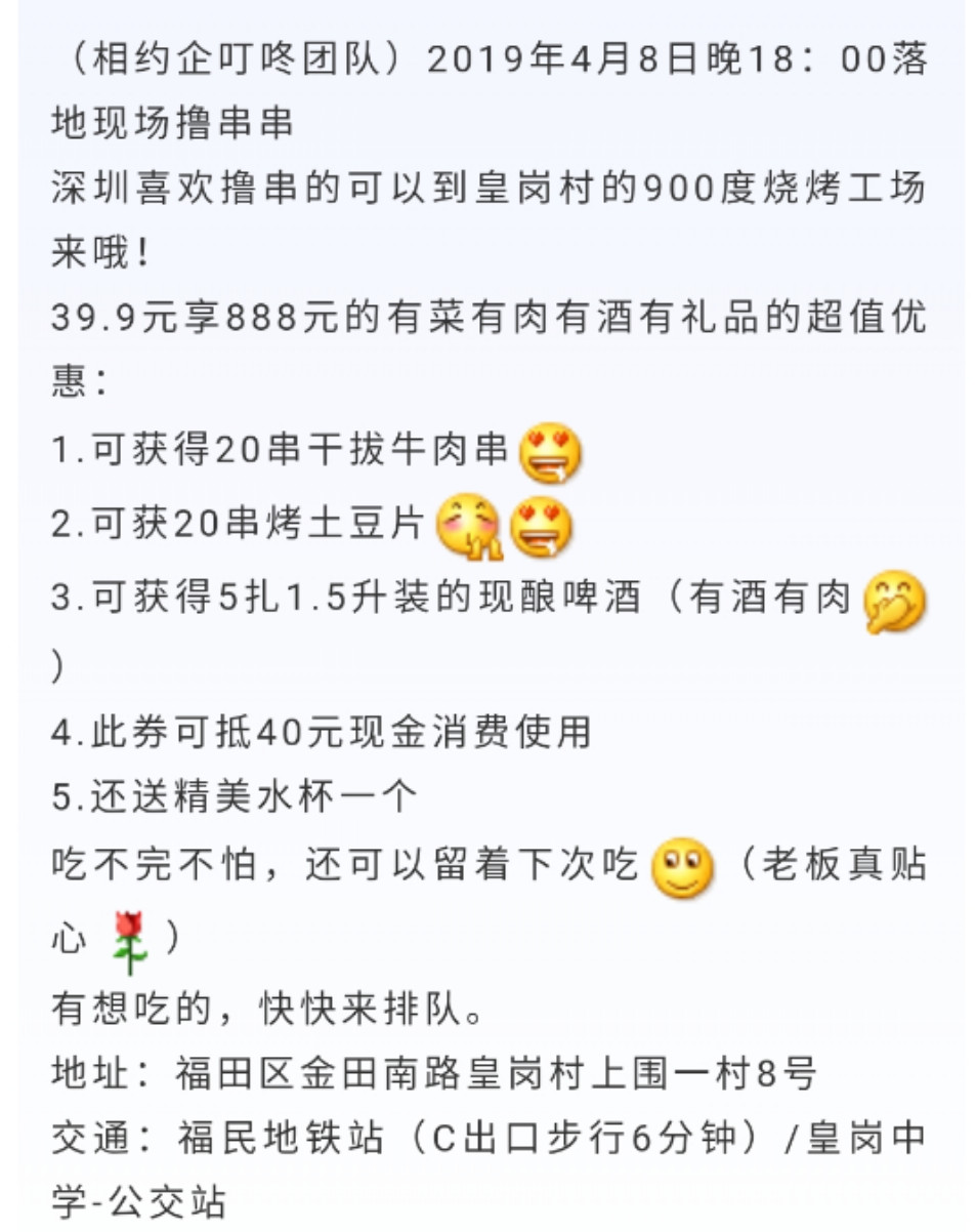深圳福田皇崗村,900度燒烤店,通過合作業績倍增模式,5天時間賣掉1000張體驗卡!活動場面火爆,想知道如何做的?歡迎聊聊~
