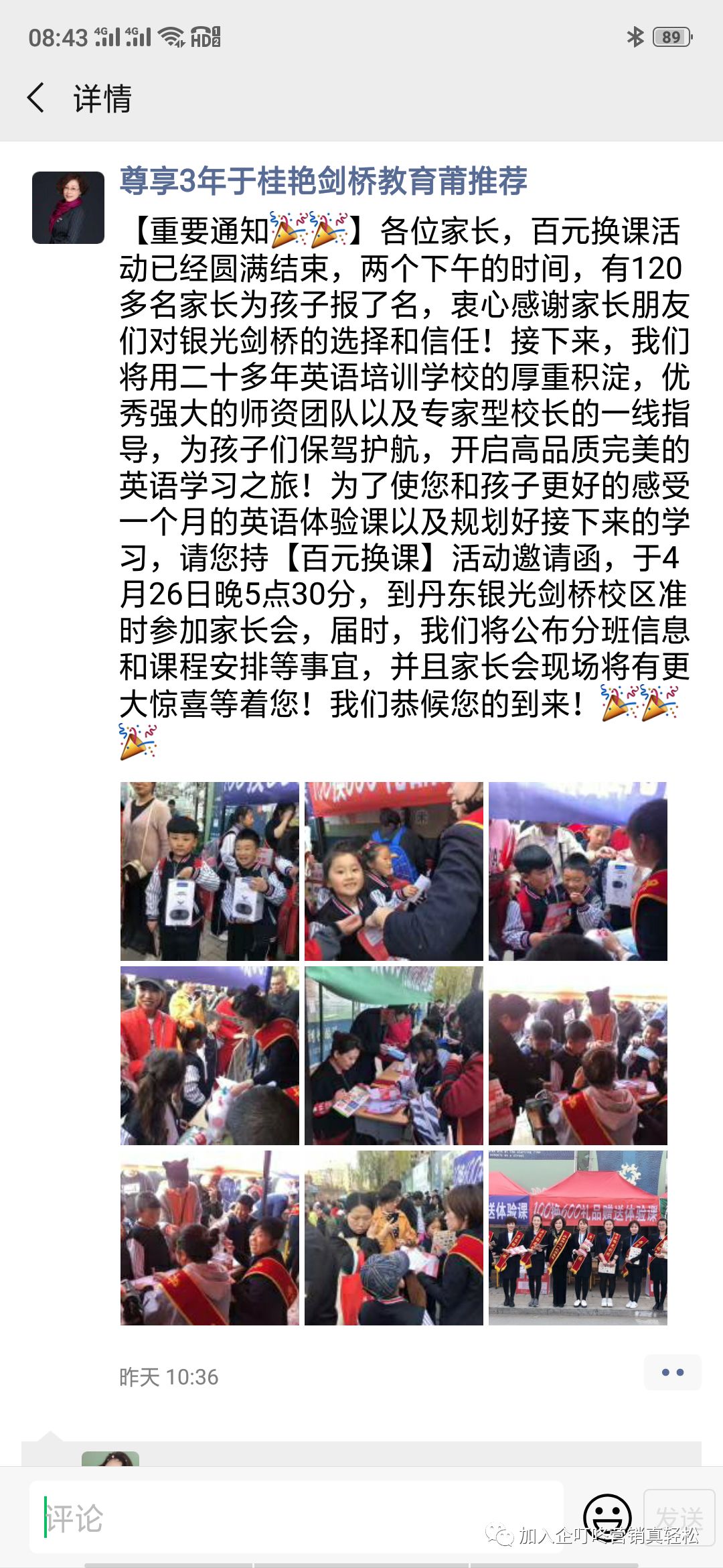 此次銀光劍橋教育的活動(dòng)主要是為后期招生做的一個(gè)引流活動(dòng),主題是:100元換600禮品、贈(zèng)送400元的體驗(yàn)課。僅使用了我們18款工具之首——贈(zèng)品刀,效果卻是非常的簡(jiǎn)單高效。