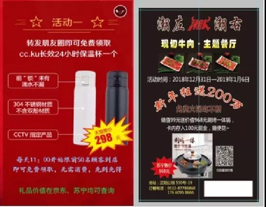 引流產(chǎn)品是,你轉(zhuǎn)發(fā)朋友圈即可免費(fèi)領(lǐng)取價值298元的保溫杯一個(限名額、時間)。開門產(chǎn)品是,凡是進(jìn)店顧客成為會員即可免費(fèi)領(lǐng)取價值968元的韓國麥?zhǔn)堜炭疽惑w鍋一套。