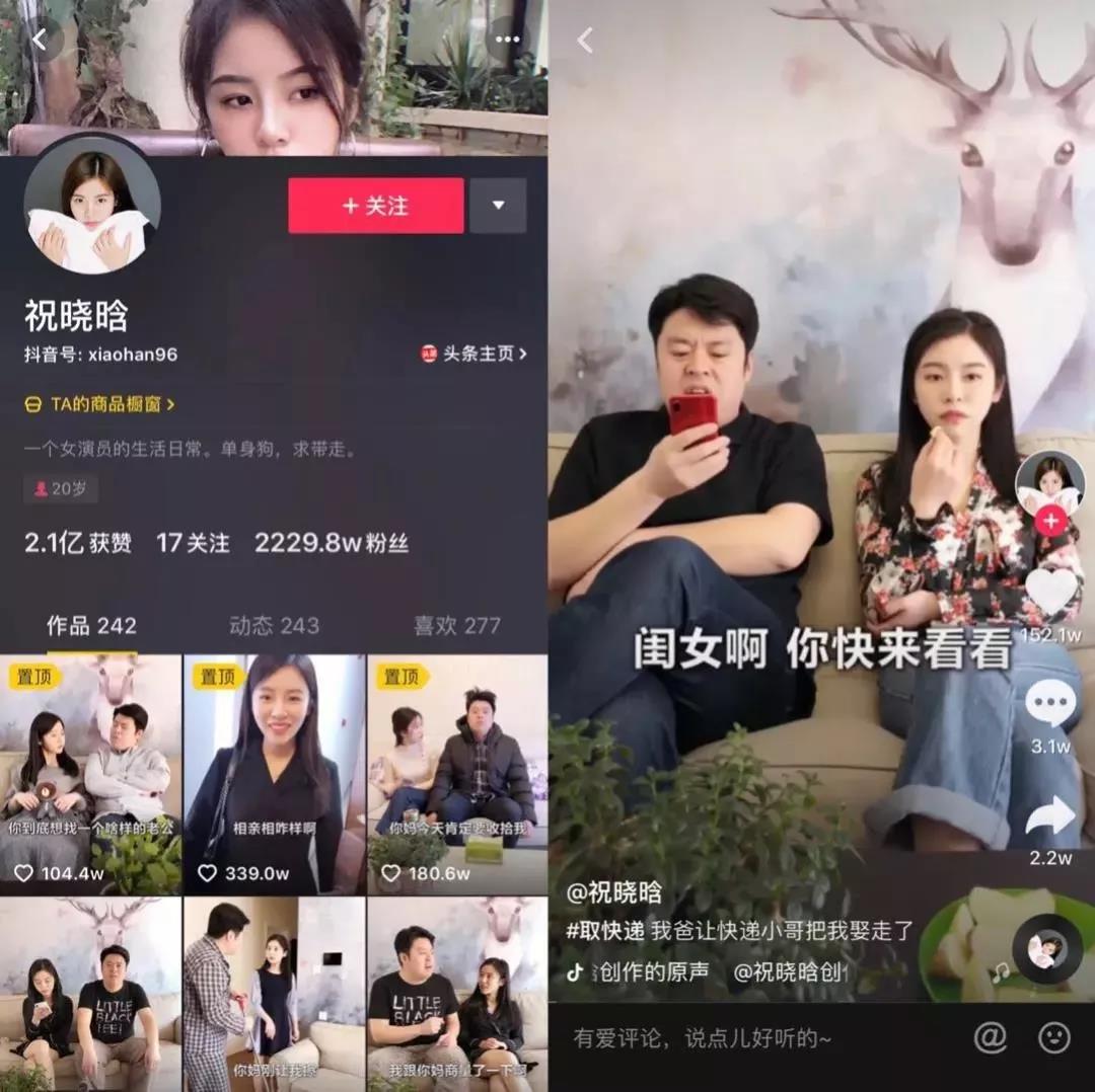 在摸索了一個(gè)月后,才把「祝曉晗」內(nèi)容背景設(shè)置為家庭場(chǎng)景,視頻內(nèi)容常以父女之間發(fā)生的各種搞笑故事為主。