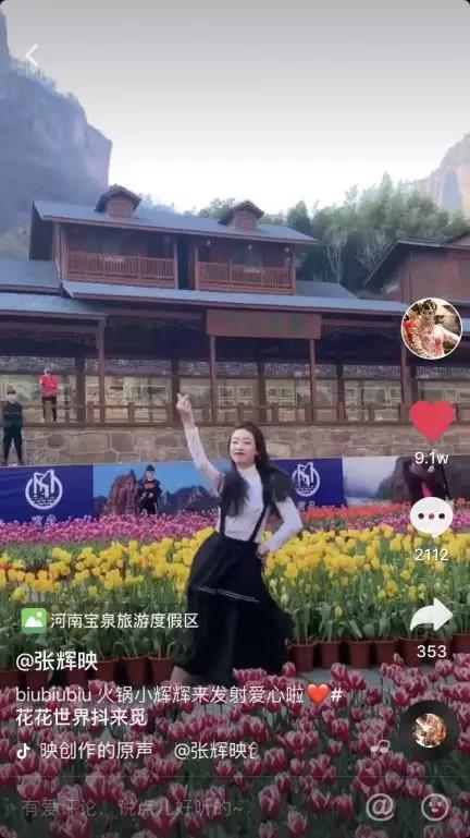 在活動(dòng)中,“抖音火鍋一姐”張輝映通過(guò)精彩的舞蹈,與寶泉景區(qū)景色融合相應(yīng),而“小輝輝”的這支抖音視頻點(diǎn)贊高達(dá)9.3w,向廣大網(wǎng)友展現(xiàn)出了寶泉景區(qū)的不同美景。小輝輝的眾多粉絲也紛紛互動(dòng)評(píng)論、點(diǎn)贊,他們留言稱:“又標(biāo)記一個(gè)絕美之地”。