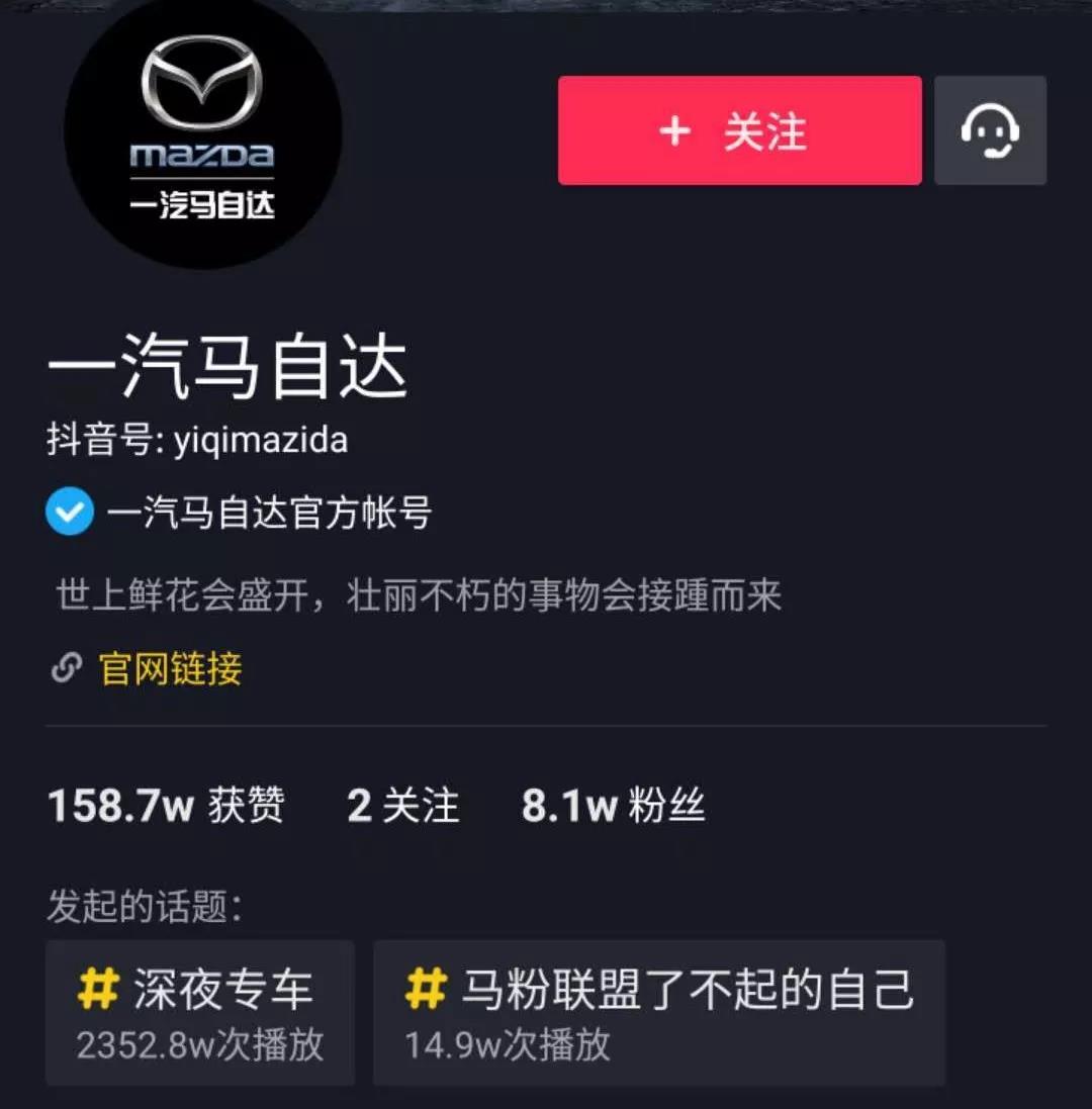 也希望“一汽馬自達”繼續改進目前的劇情風格,不久的將來成為抖音汽車品牌的一個頭部賬號!