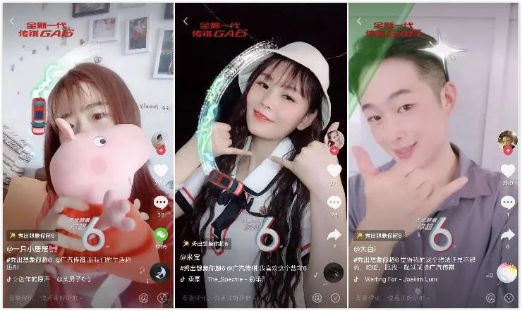 活動(dòng)的創(chuàng)意非常簡(jiǎn)單,只需要用戶尋找到關(guān)于“6”的元素,特效貼紙的綠幕就會(huì)揭開,代表著屬于用戶自己的電影正在上映,通過(guò)鼓勵(lì)用戶使用貼紙開放性創(chuàng)作,并且在傳播過(guò)程中,通過(guò)參與者的手勢(shì)、特效、文案不斷強(qiáng)化用戶對(duì)全新一代傳祺GA6的記憶。