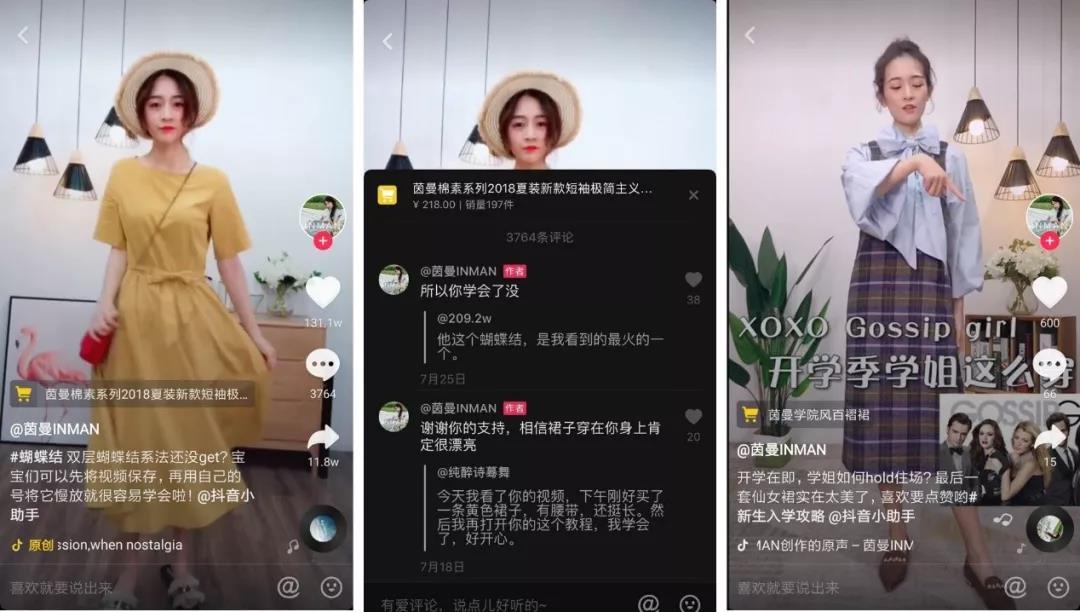 實用技巧類內(nèi)容,讓用戶在學習中“種草”商品。模特身穿茵曼品牌服裝,通過發(fā)一些蝴蝶結(jié)系法、鞋帶系法、領結(jié)教程、絲巾玩法等服飾相關教程,吸引用戶在學習技巧過程中,對展示的單品產(chǎn)生購買興趣。同時,實用技巧類視頻的互動作用更為明顯,如茵曼品牌主頁中一條超過131w贊的爆款視頻是教如何打雙層蝴蝶結(jié)的視頻,評論里出現(xiàn)很多關于系法的詢問和互動,以及求裙子購買鏈接的評價,利于粉絲的積累。除服裝類的技巧展示外,鑒于茵曼是女裝品牌,日常運營中還會發(fā)布一些專門針對女性用戶的話題,如如何拍照更顯腿長、如何擺pose等拍照教程視頻。