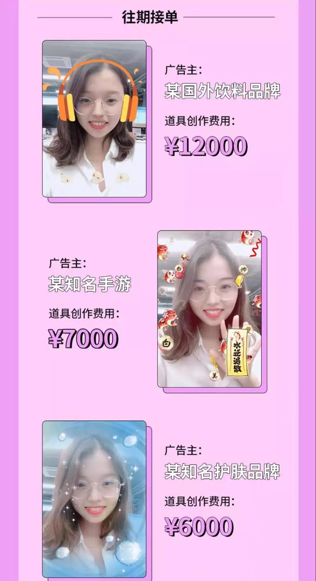 特效商單,賺個零花錢 幾乎所有的抖音特效師都是兼職。他們一般有兩塊收入:參加比賽拿獎金,通過平臺接商單。 根據抖音公示的計劃,一個商單的價格在數千到上萬不等。半年時間,白小白接了三四個商單,用他的話說,現在“就是賺個零花錢”。