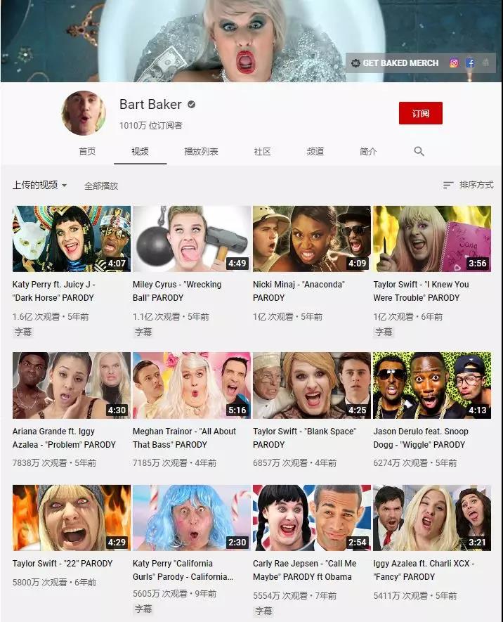 更何況,這是一個(gè)已經(jīng)在YouTube耕耘超過5年之久,創(chuàng)作了約300個(gè)5分鐘以上長視頻的資深紅人,模仿水果姐Katy Perry的視頻播放量破億。夸張的表現(xiàn)力是他特色,“我覺得無論是和中國人還是外國人對比,他的表現(xiàn)力都是數(shù)一數(shù)二的強(qiáng)”,經(jīng)紀(jì)人Btai告訴我。