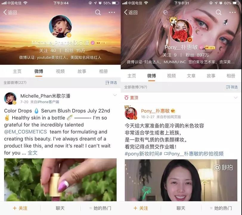目前已有近900萬粉絲的韓國美妝博主「Pony__樸惠敏」在2016年入駐微博,由南極電商代理,相較之下,其Instagram和YouTube的粉絲分別為660萬和527萬,據(jù)了解,Pony的自有品牌Pony Effect在淘寶開店當(dāng)天銷售額過千萬。
